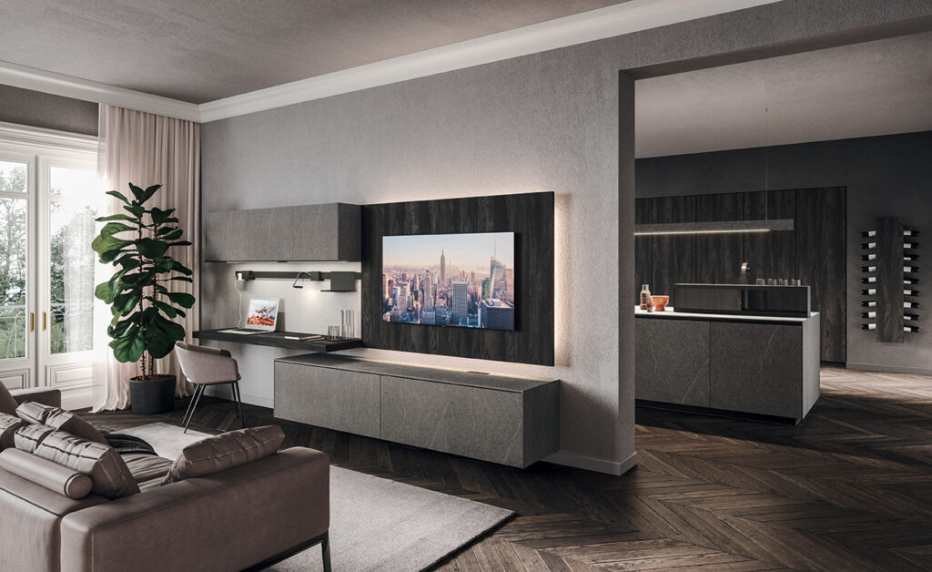 Unificación de áreas con texturas, materiales, colores, en mobiliario de diferentes espacios. Ambientes completamente abiertos y personalizados.
